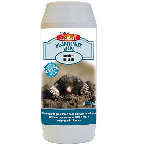 Il disabituante granulare, in confezione da 1000 ml, è un ottimo scaccia talpa e nutria: grazie alla sua formulazione a base di olii essenziali, sgradevoli alle talpe, li allontana in maniera del tutto naturale, ed è inoltre TOTALMENTE INNOQUO per persone, animali e piante.